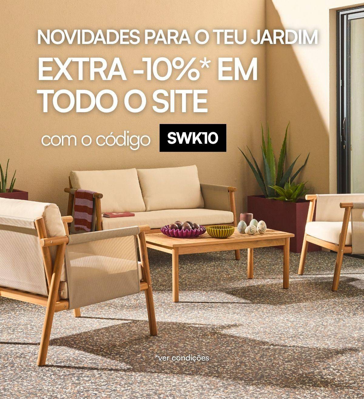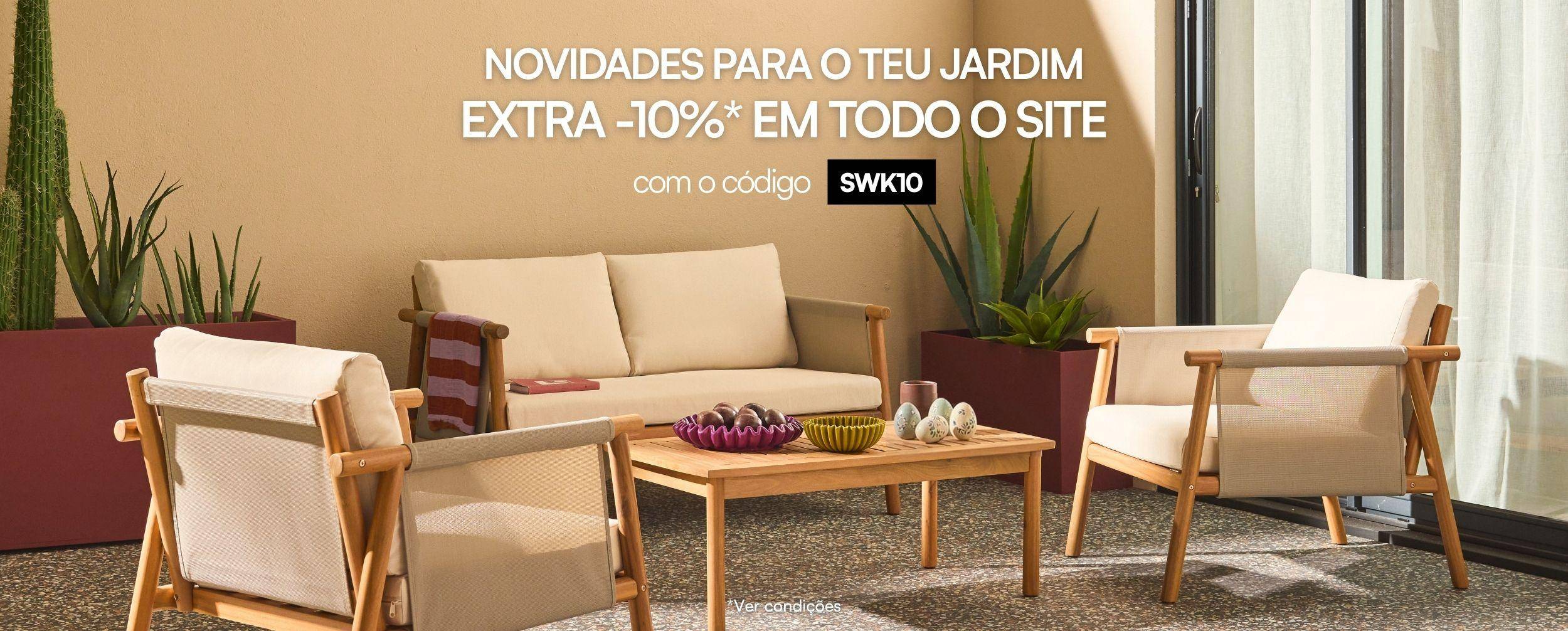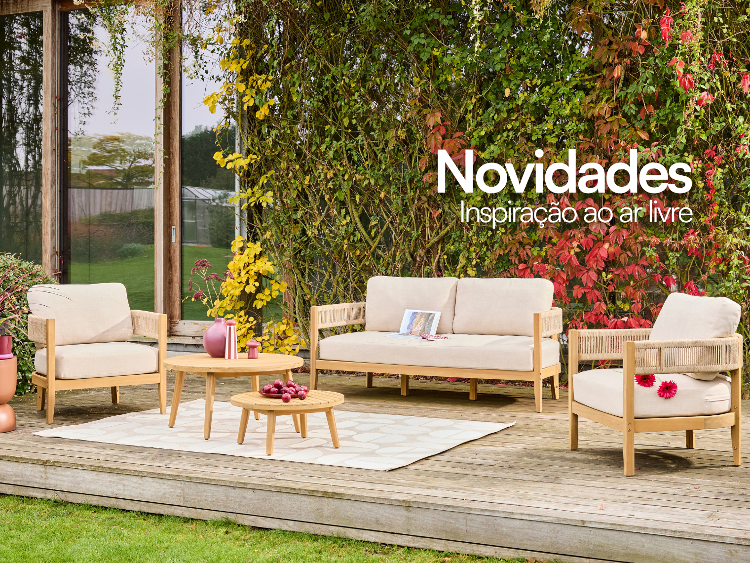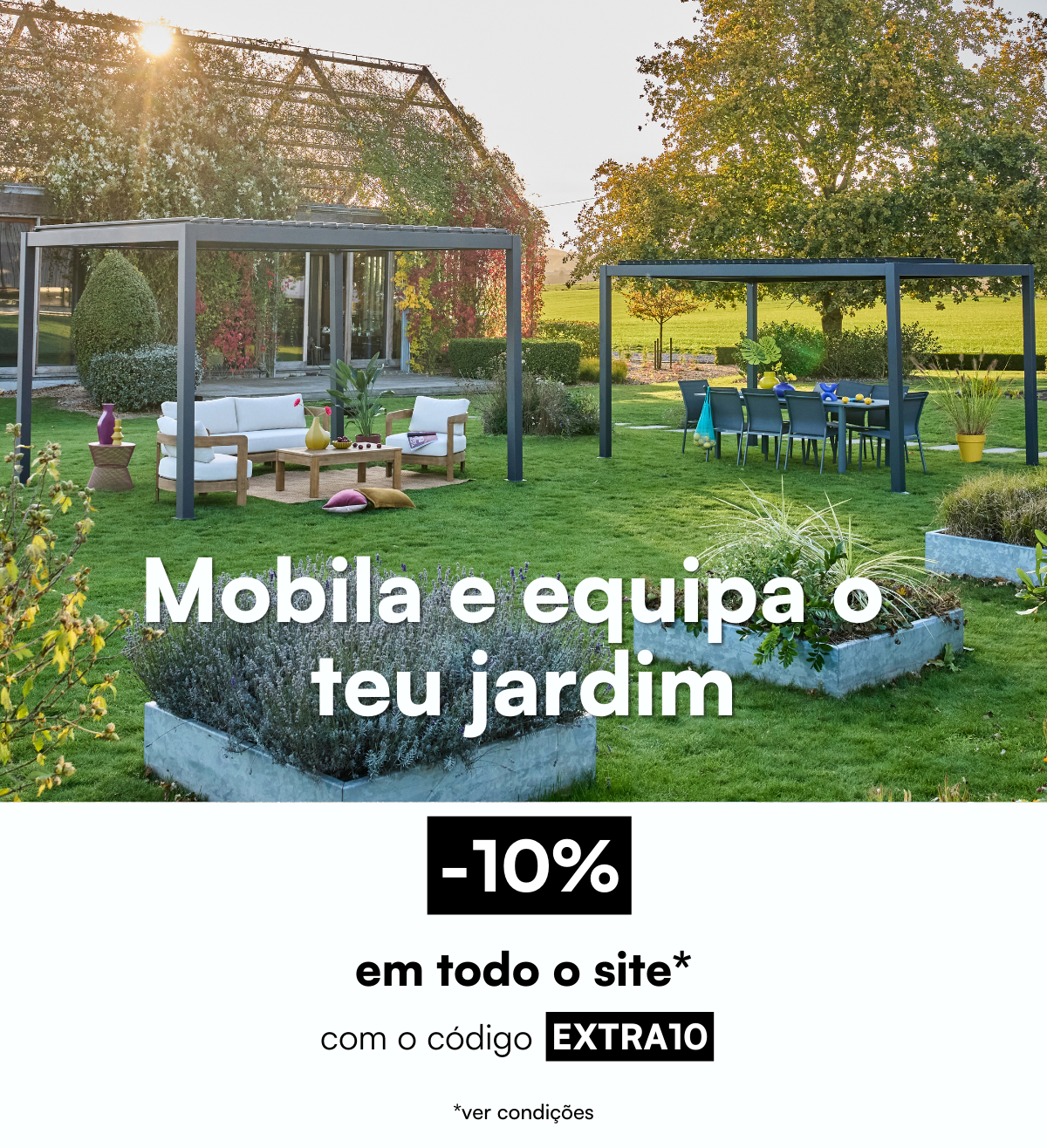 Na sweeek, comprometemo-nos a oferecer as melhores soluções de mobiliário de jardim: conjuntos e sofás de jardim, em madeira, alumínio ou resina entrançada, pode escolher a opção que seja melhor para si. Para completar o seu mobiliário de jardim, propomos-lhe espreguiçadeiras ou camas de rede para relaxar tranquilamente sob o seu guarda-sol ou pérgola. Temos a certeza de que vai desfrutar de umas férias inesquecíveis em casa.