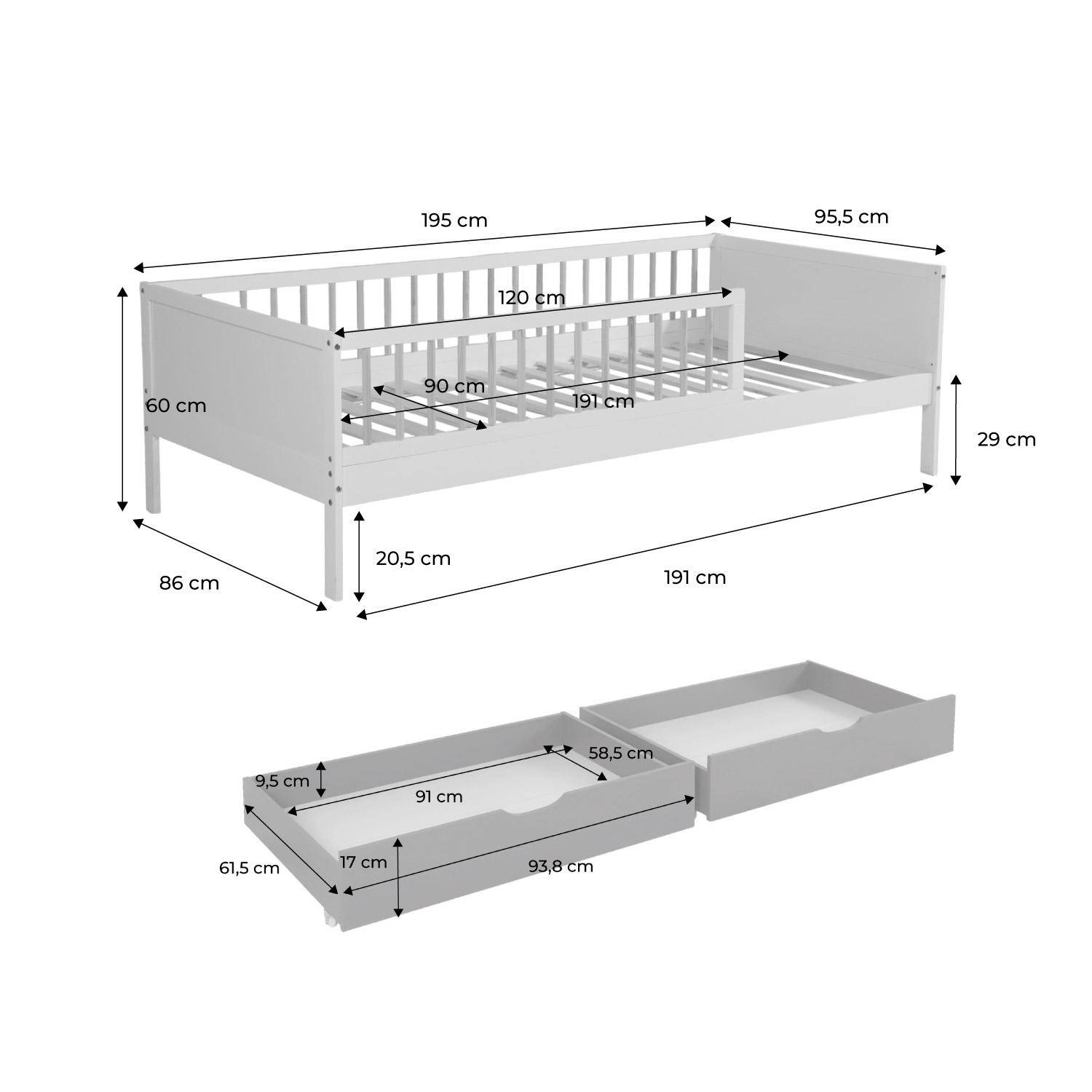 Com simplicidade e charme, a cama infantil Elio traz uma bela atmosfera escandinava ao quarto das crianças. Seu design suave e moderno, combinado com o calor da madeira de pinho, faz dela uma cama de solteiro ao mesmo tempo sólida e cheia de charme. Graças ao seu estrado de ripas incluído, o conforto está garantido para noites tranquilas. Sua barreira protetora assegura os pequenos dorminhocos enquanto os deixa livres para se mover. A cama Elio é aquele cantinho acolhedor que torna a hora de dormir mais suave e a decoração ainda mais bonita.
