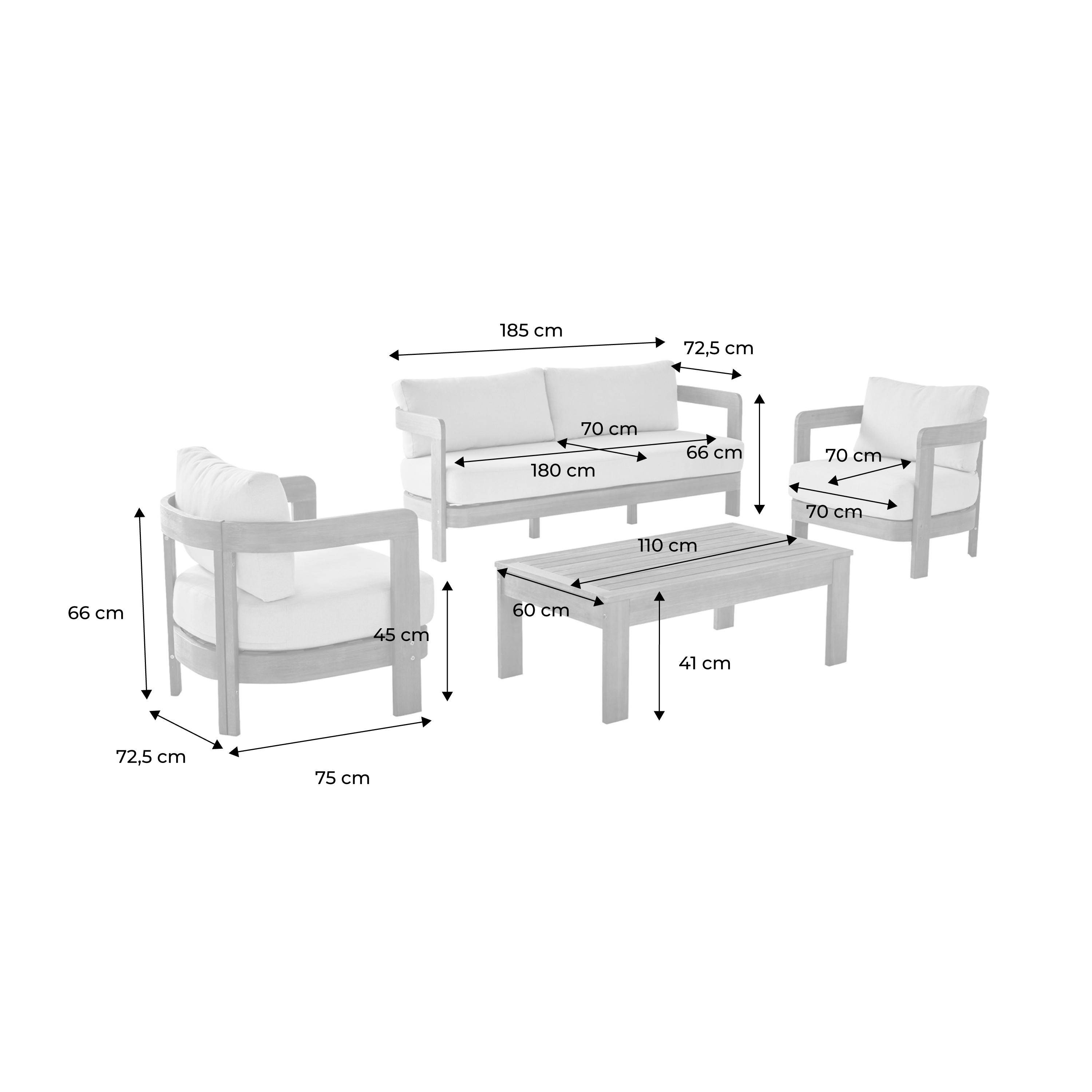 O conjunto de jardim Elomi transforma o seu terraço ou jardim em um verdadeiro refúgio de relaxamento. Sua madeira de acácia calorosa combina perfeitamente com a delicada corda dos encostos e apoios de braço, trazendo um toque de sofisticação natural ao seu espaço exterior. Os encostos delicadamente arredondados e as almofadas generosamente confortáveis convidam a momentos de relaxamento prolongados, seja para um café tranquilo pela manhã ou uma noite com amigos. A mesa de centro retangular, prática e elegante, completa o conjunto e permite manter suas bebidas e petiscos ao alcance. Desmontáveis e fáceis de manter, as almofadas facilitam o dia a dia enquanto mantêm um visual impecável. Instalar Elomi em sua casa é convidar a convivialidade, o conforto e um estilo refinado em cada momento passado ao ar livre.