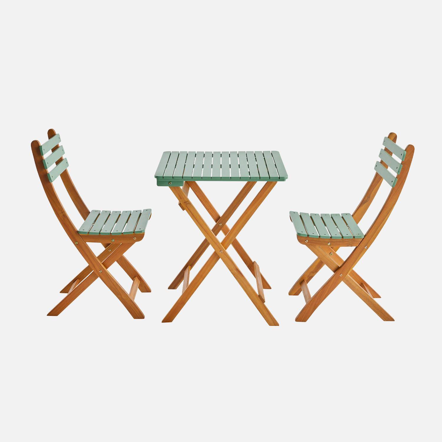Mesa de jardim em madeira de acácia, 2 cadeiras dobráveis