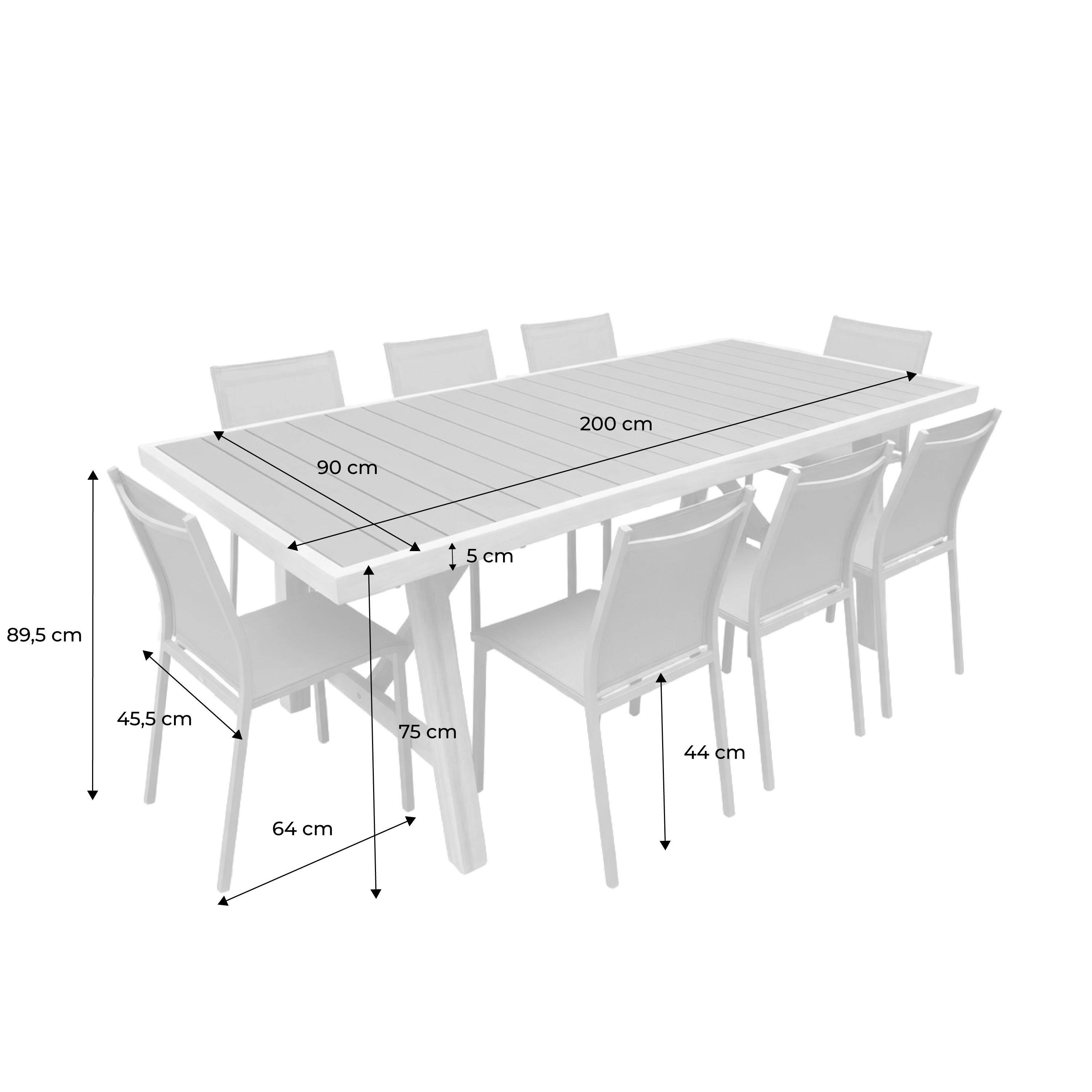 Mesa de jardim em madeira de seringueira e alumínio com 8 cadeiras