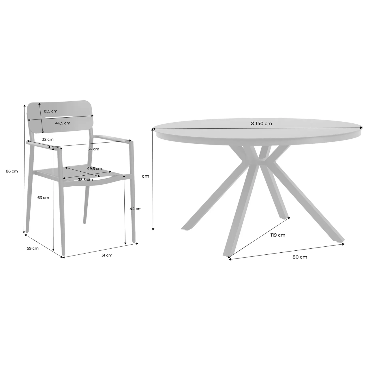 Este conjunto inclui a mesa Orbis e 6 cadeiras Fira