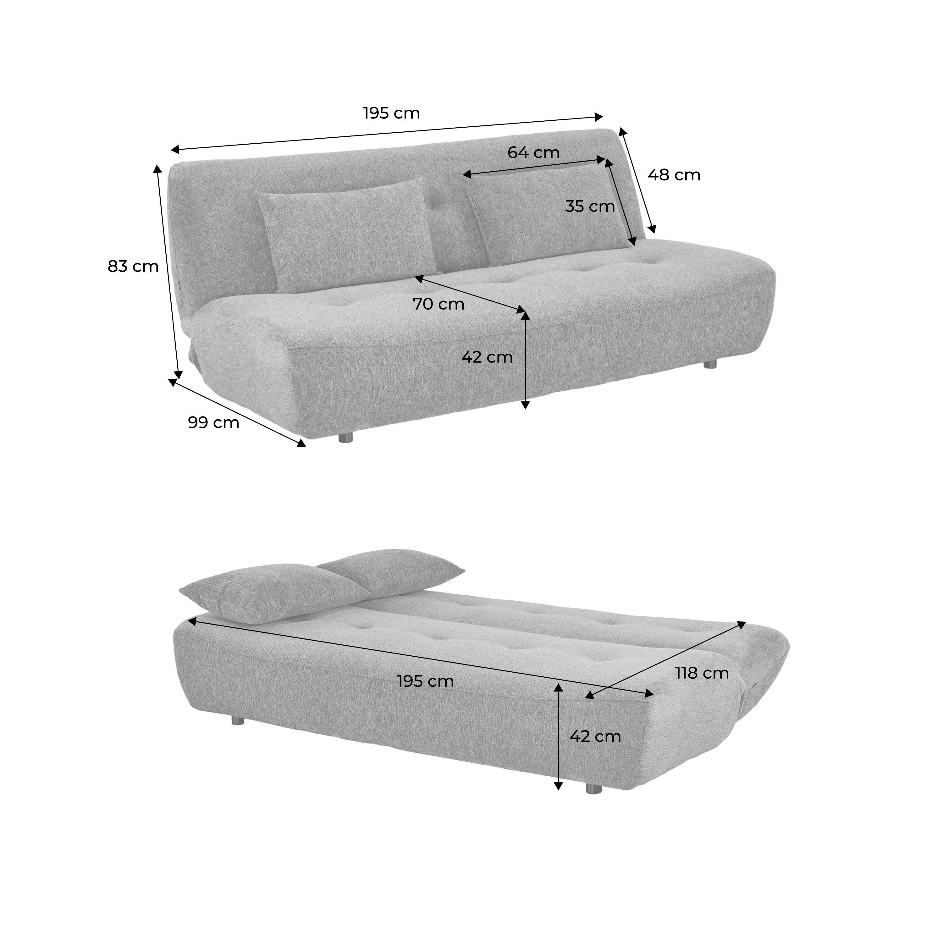 Sofá-cama conversível em tecido chenille, 3 lugares